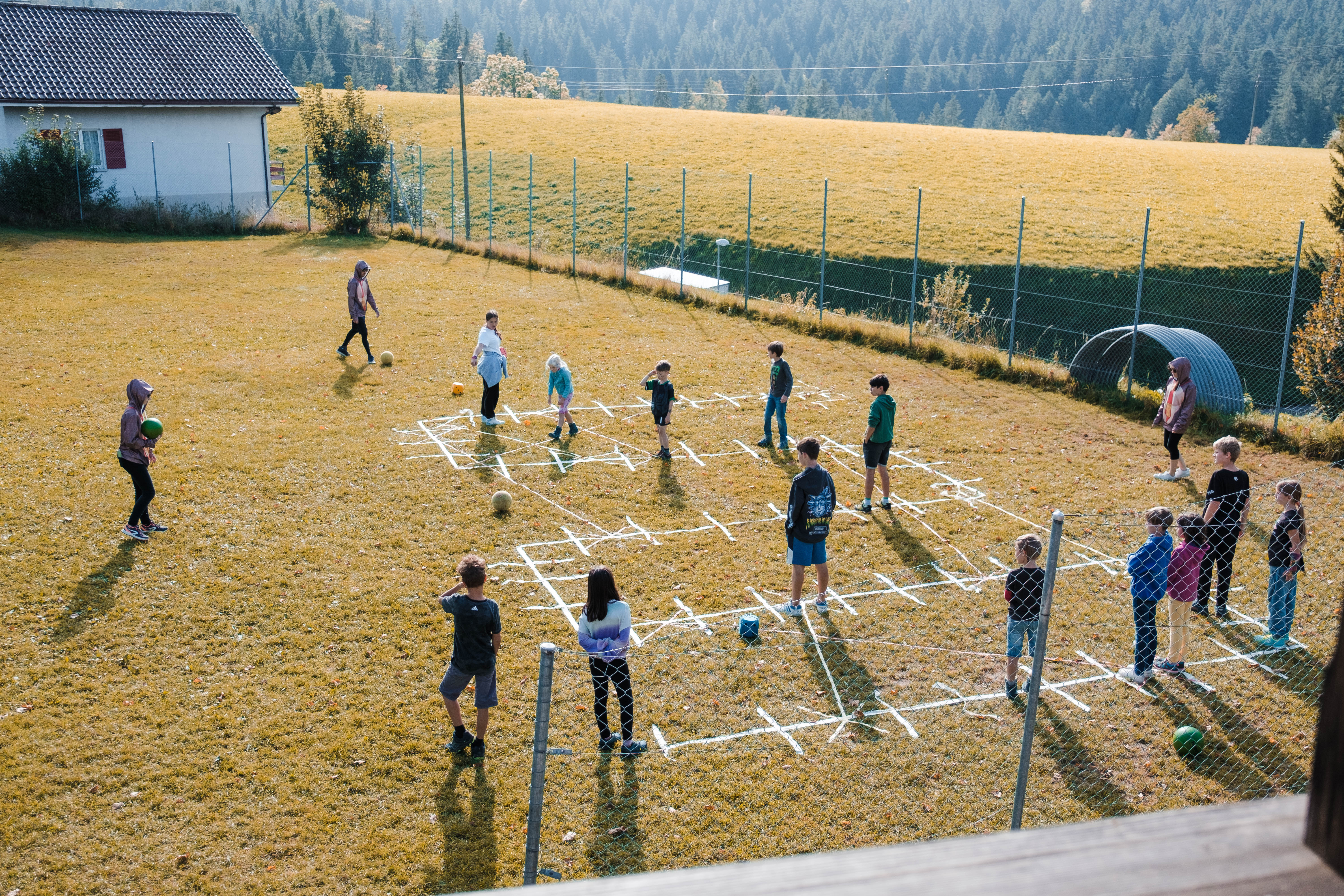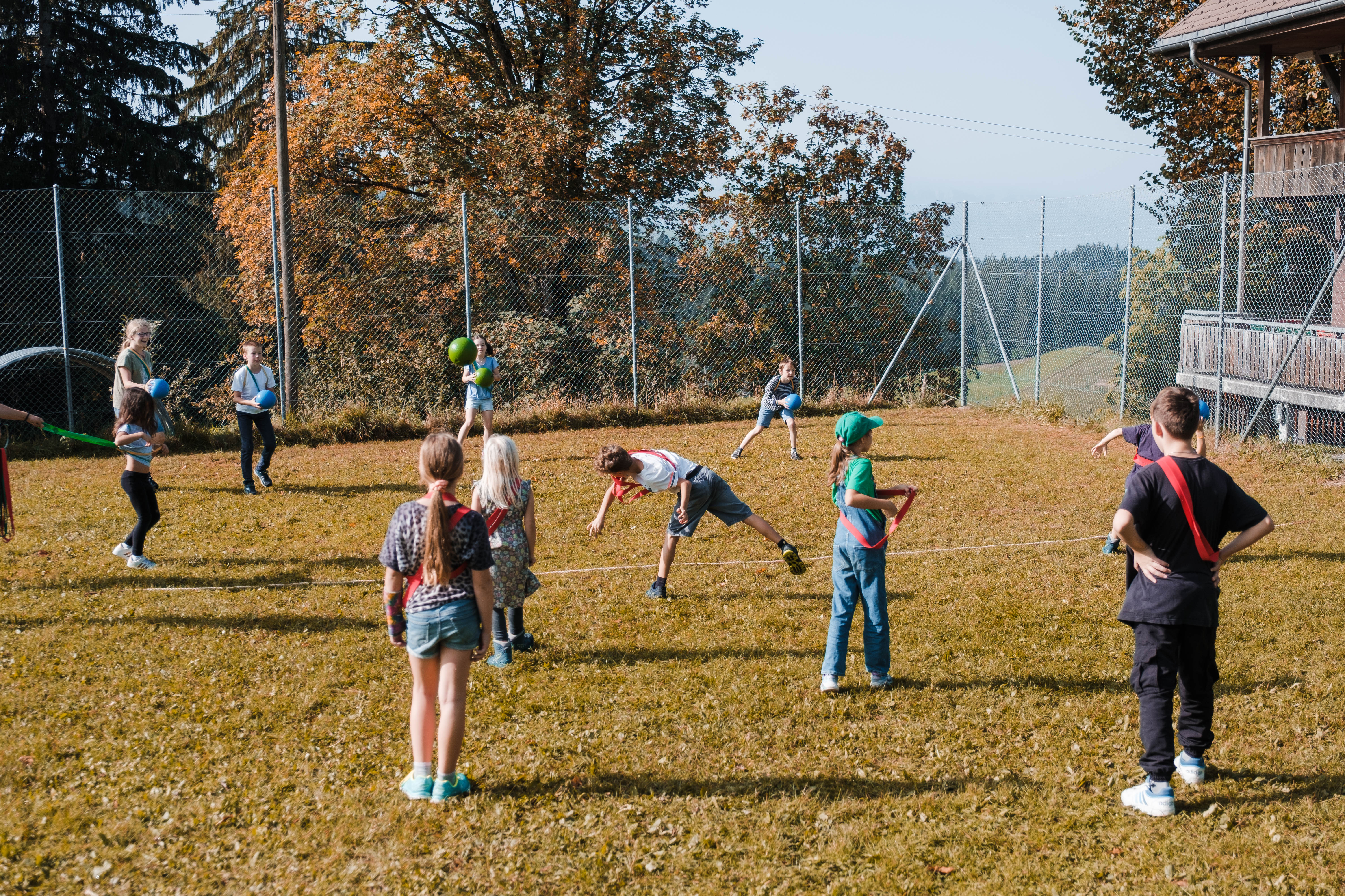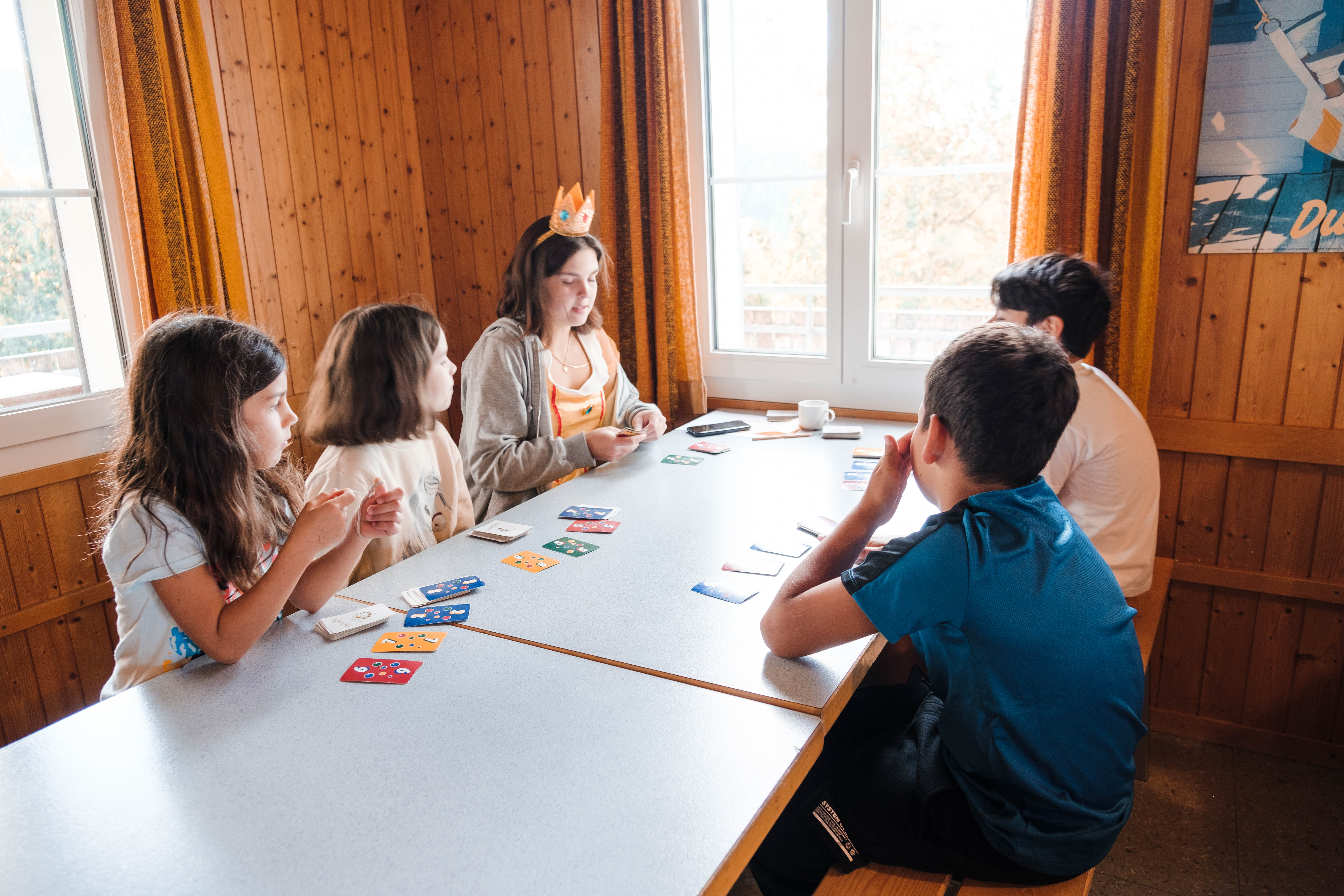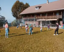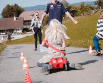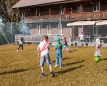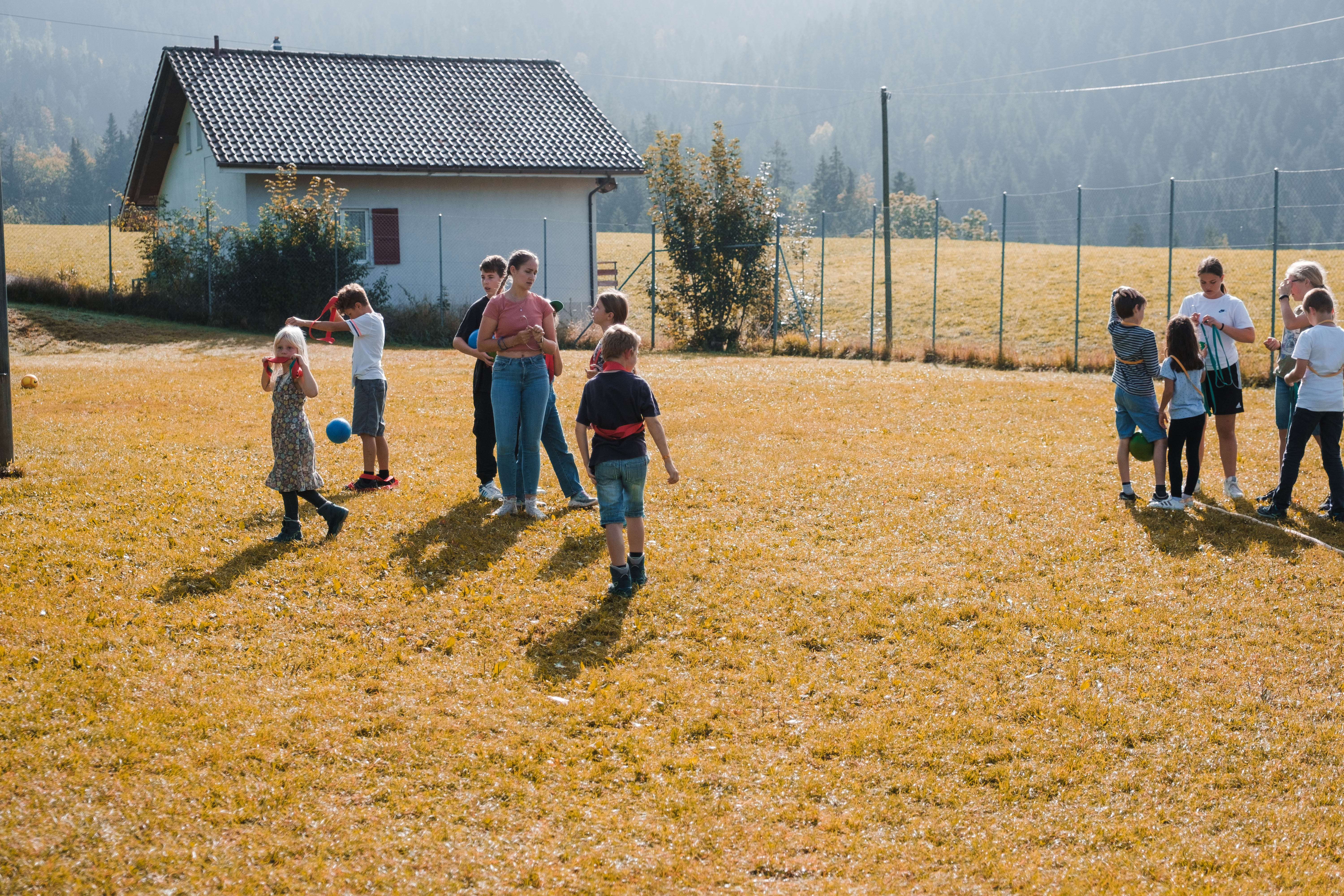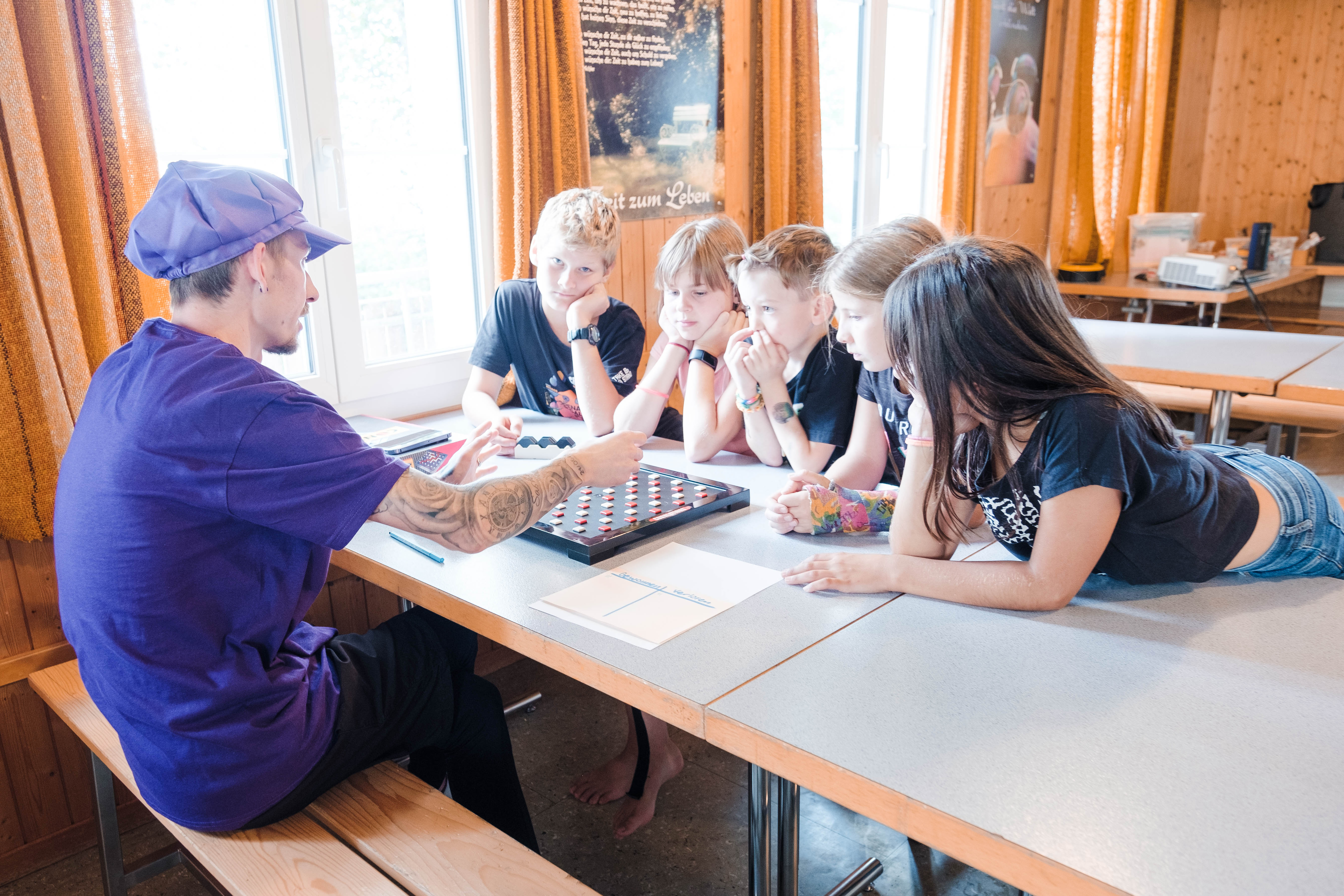 Am Morgen war jedoch erstmal freies Spiel angesagt. Die Kinder durften die Zeit für sich nutzen, einige übten bereits fleissig für den bunten Abend. Zum Z'mittag gab es feine Lasagne; das perfekte Gericht für den bevorstehenden Endkampf. Dieser fand wenige Stunden später auf der grossen Spielwiese statt. Es handelt sich um ein XXL Monopoly Geländespiel, jedoch in abgeänderter Form. Während die vier Teams der Kinder klassisch Strassen kaufen und vervollständigen können, kann Bowser diese Felder verändern. So erscheint auf einem Feld plötzlich die fleischfressende Pflanze oder ein Kettenhund, welche den Kindern die Münzen stehlen. Oder ein Team muss eine ganze Runde für Bowser spielen, und die gesamten Einnahmen an ihn überreichen. Schnell verstanden die Kids, dass sie zwar in vier Gruppen eingeteilt wurden, allerdings zusammenspielen und verhandeln müssen, um den gemeinsamen Feind Bowser zu besiegen. Indem die Teams schlau verhandelten und gezielt ihre Häuser bauten, konnte der Münzbestand von Bowser immer schneller abgebaut werden. Nach einer Stunde war dieser völlig bankrott und musste sich geschlagen geben. Der Jubel war gross und die gesamten Super Mario Figuren waren unendlich dankbar.