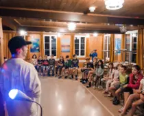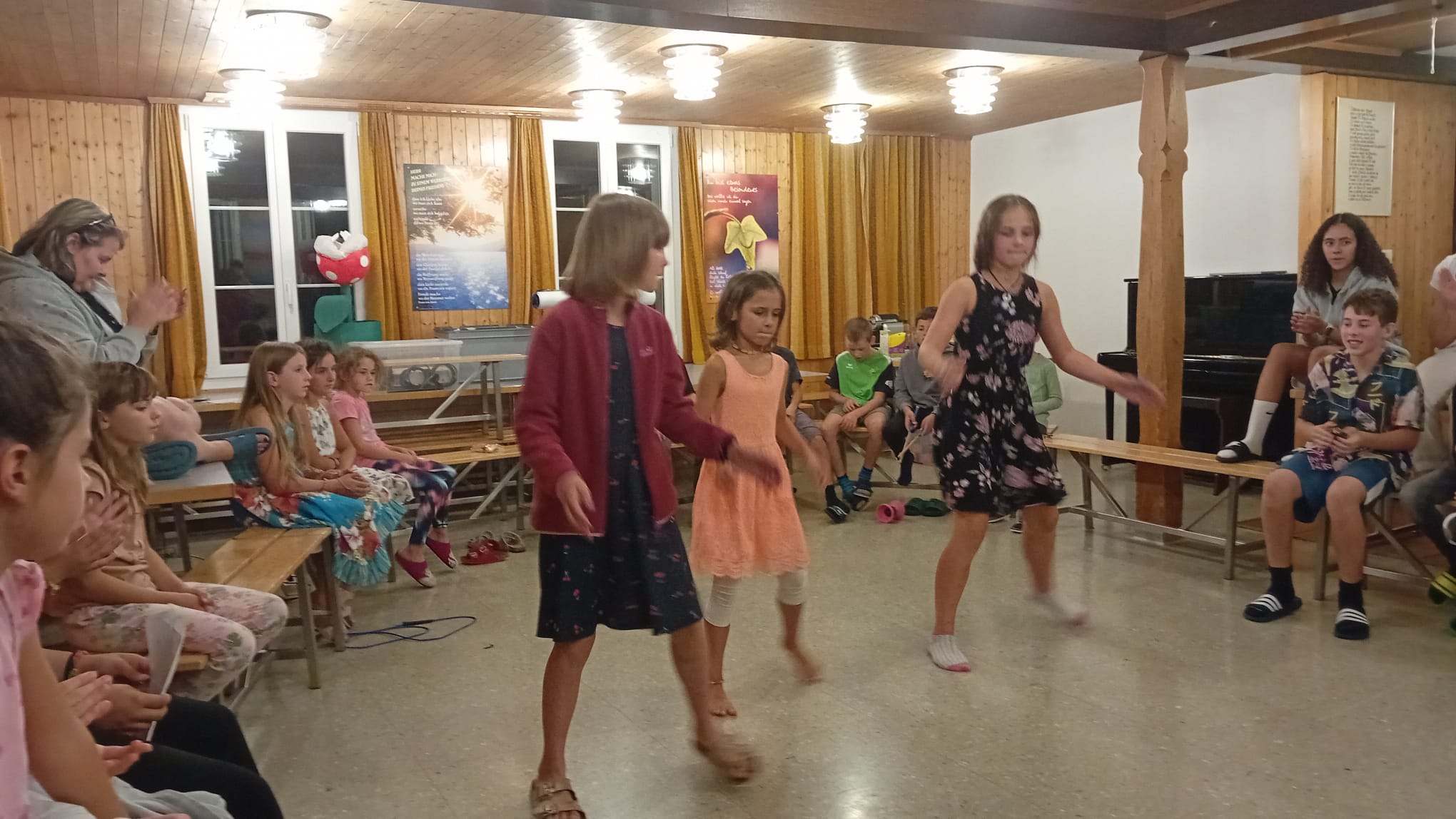 Der krönende Abschluss bildete der bunte Abend mit sportlichen, musikalischen und tänzerischen Elementen. Auch diverse Witze und Zaubertricks wurden vorgezeigt. Das obligatorische Herzblatt fand ebenfalls statt, wodurch sich drei ganze tolle Paare gefunden haben. Applaus an all unsere Talente, wir freuen uns bereits jetzt auf die Performances im nächsten Jahr! Eine kleine Tanzeinlage am Schluss beendete den erfolgreichen Abend.