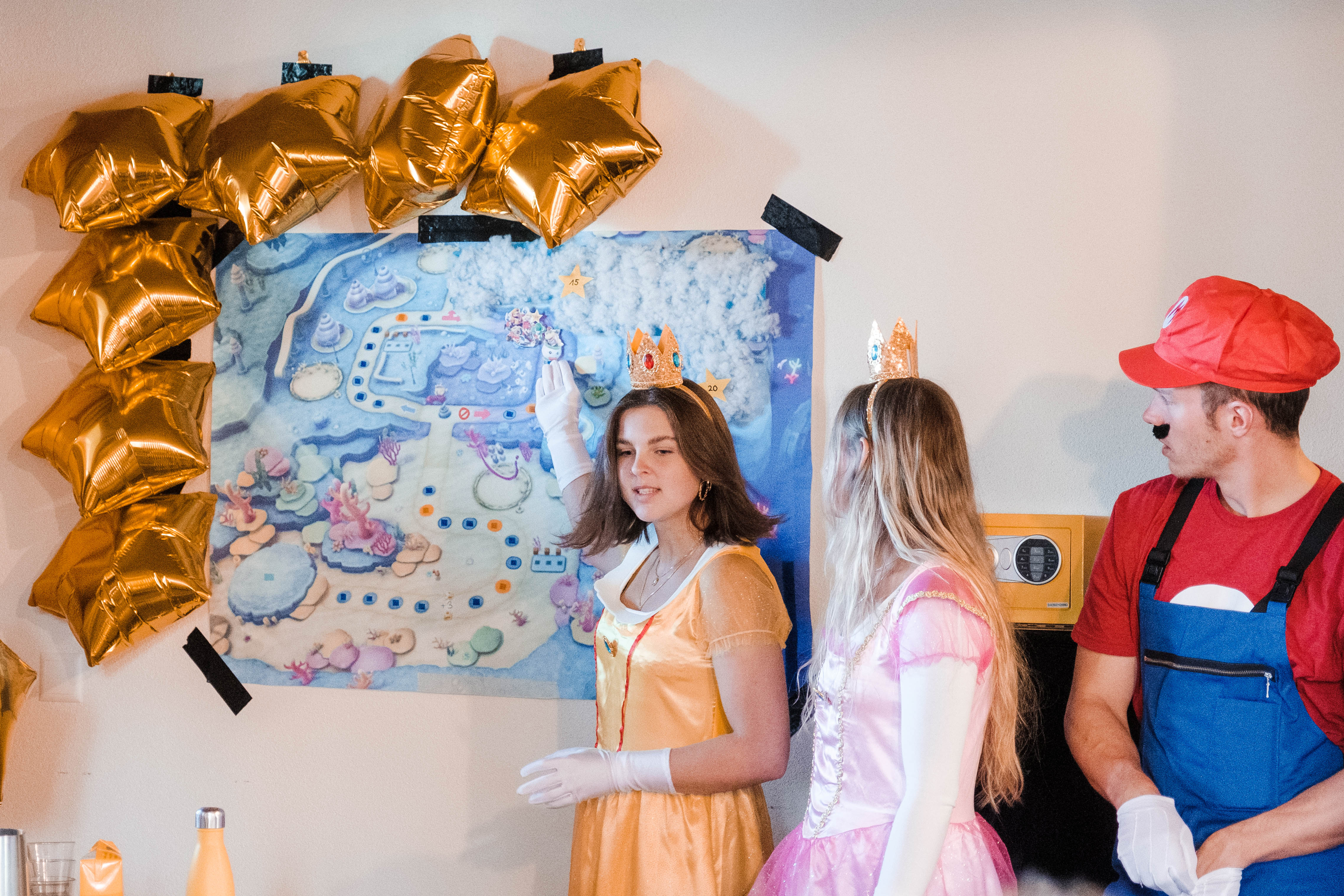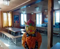 Nach einer eher turbulenten Nacht und der Feststellung, dass der Kleiderschrank nicht als Schlafplatz geeignet ist, starteten wir in unseren letzten ganzen Lager Tag. Beim Morgeninput mussten wir feststellen, dass uns 20 Münzen fehlen, um den finalen Abschnitt der Karte freizuschalten. Da die Kids sich jedoch bei der gestrigen Modenschau stilbewusst und kreativ zeigten, schenkte uns Rosalinda die fehlenden Sterne. Als sich das Wolkenmeer lüftete, stellten wir entsetzt fest, dass wir uns in einem Endkampf Bowser stellen müssen! Da die Super Mario Figuren immer noch unter seiner Gewalt stehen, sehen wir uns in der Pflicht, diese zu befreien.