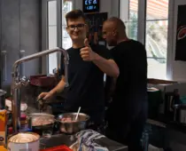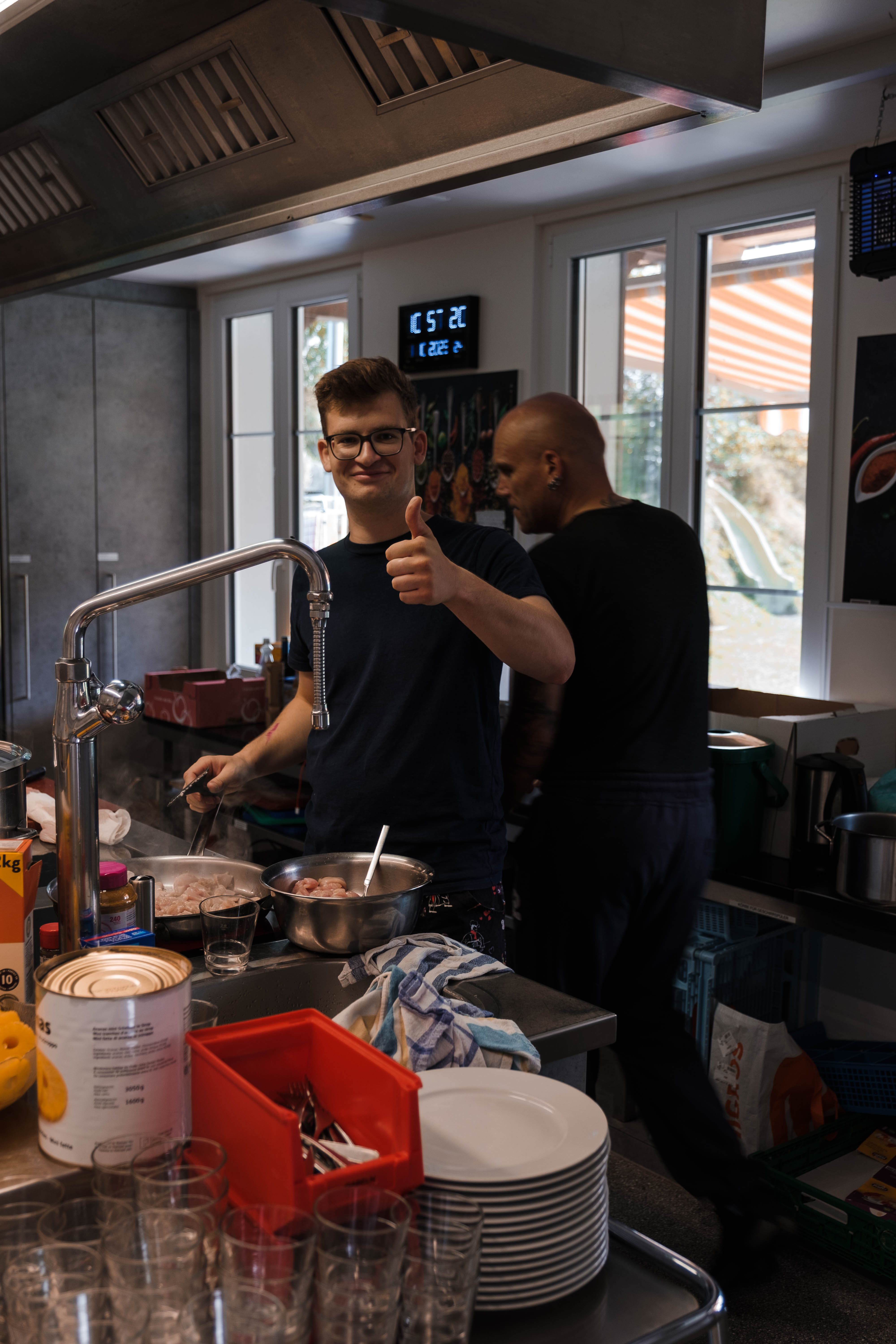 Nach dem intensiven Endspiel, der letzten Hauptprobe für den bunten Abend und einer Badesession im Brunnen, gab es auch schon Znacht. Wie jedes Jahr am letzten Abend handelte es sich dabei um die legendären Dampfnudeln. Unser neuer Küsche Marc überzeugte in voller Linie. Die Dampfnudeln wurden von allen Kids (und uns Leitern) abgesegnet. Der Stellenwert dieses Gerichts wurde uns nochmals bewusst, als der Satz: «I chum amigs nur wege de Dampfnudle is Lager» fiel.