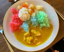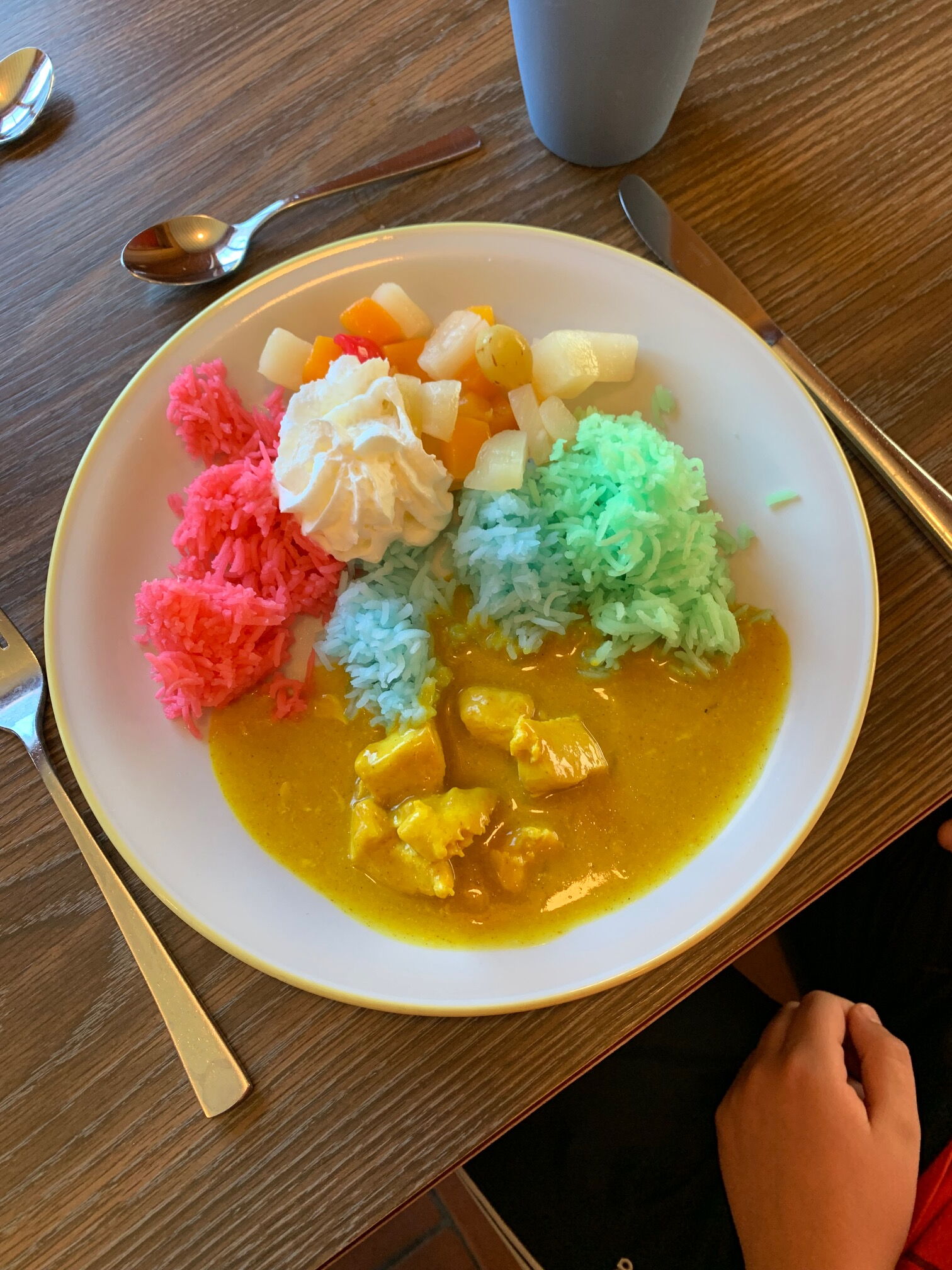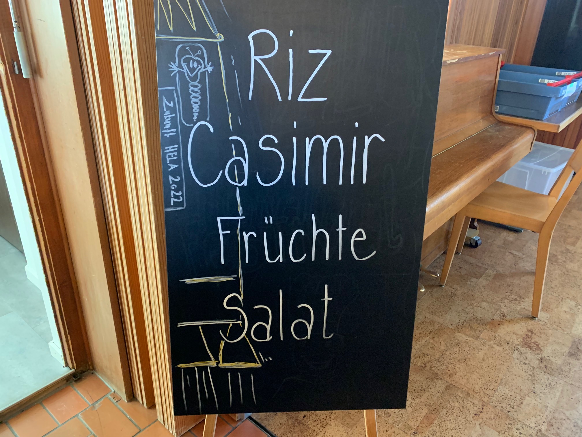 Zum Mittagessen wurden wir von unserem Küchenteam mit farbigen Riz Casimir aus der Zukunft überrascht, noch nie wurde so viel Reis gegessen. Hatte es wohl mit der Farbe zu tun???