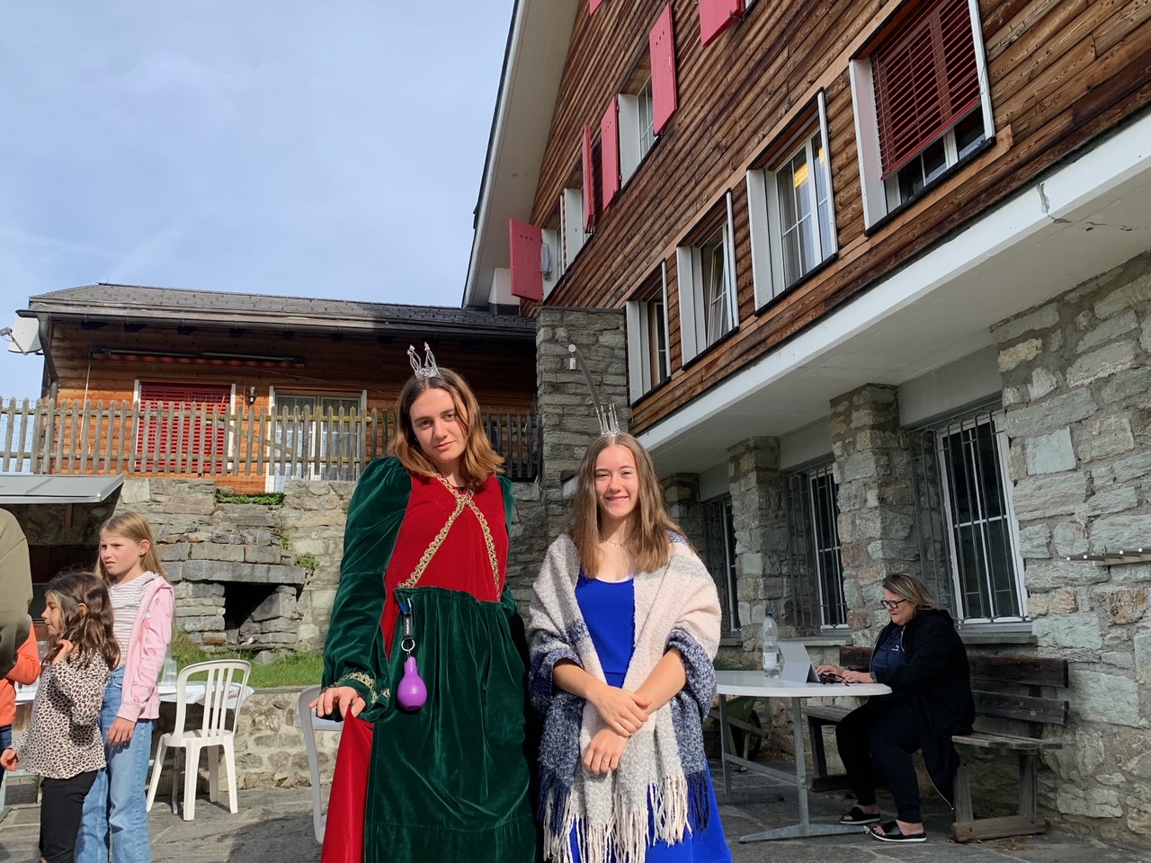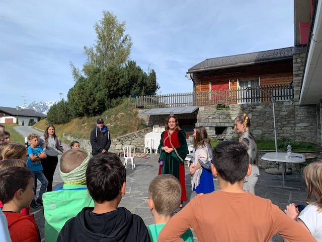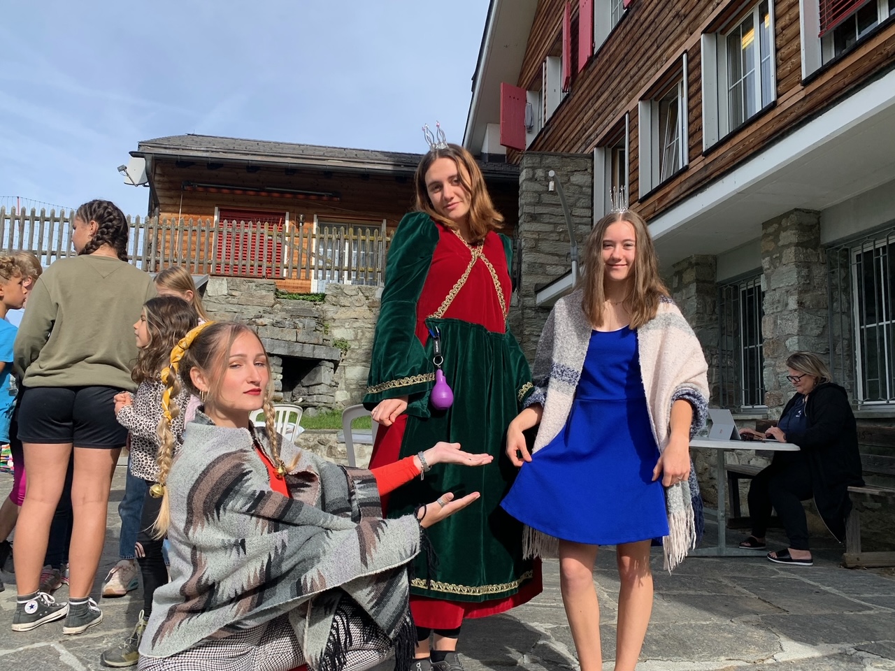 Der letzte komplette Lager-Tag startete wie immer um 07.30 Uhr. Mit lauter Musik für unser Geburtstagskind. Happy Birthday!! Nach dem feinen Frühstück machten wir uns auf unsere letzte Reise mit unserem Zeitmaschinen-Prototyp. Ziel war wieder die Gegenwart. Der Start war geglückt und wir waren zuversichtlich in der Gegenwart anzukommen. Doch leider ist der Start-Stop-Hebel abgebrochen. Nach kurzer Hektik betätige Frau Prof. Dr. Dr. Oldgram den Notstop. Wir sind übers Ziel hinausgeschossen, wie weit war uns nicht sofort klar. Plötzlich erschienen zwei Gestalten in Silber. Leya und Persephone begrüssten uns herzlich im Jahr 3052. Huch, war doch ganz schön weit übers Ziel hinausgeschossen. So nett wie von den Beiden würden wir noch nie begrüsst. Die beiden waren vom Zeitmaschinenkommando und zuständig für den Empfang sämtlicher Zeitreisegäste.