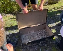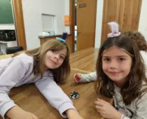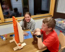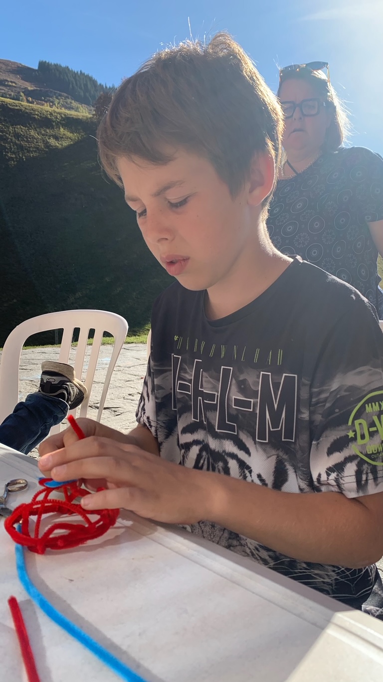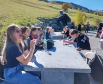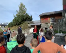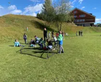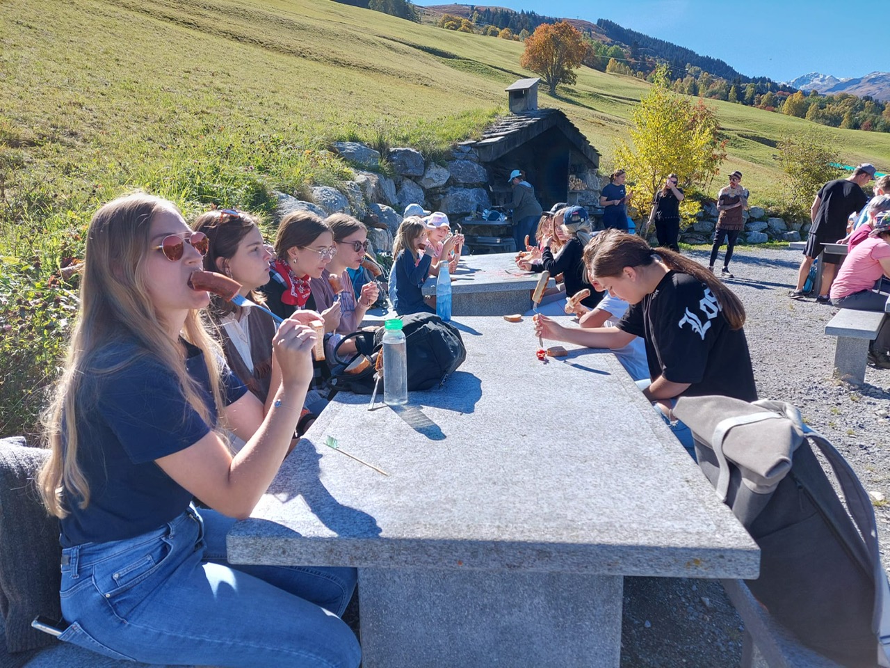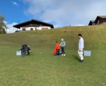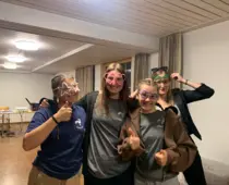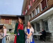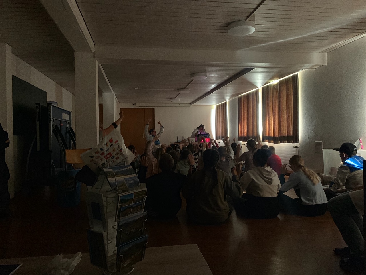 Der letzte komplette Lager-Tag startete wie immer um 07.30 Uhr. Mit lauter Musik für unser Geburtstagskind. Happy Birthday!! Nach dem feinen Frühstück machten wir uns auf unsere letzte Reise mit unserem Zeitmaschinen-Prototyp. Ziel war wieder die Gegenwart. Der Start war geglückt und wir waren zuversichtlich in der Gegenwart anzukommen. Doch leider ist der Start-Stop-Hebel abgebrochen. Nach kurzer Hektik betätige Frau Prof. Dr. Dr. Oldgram den Notstop. Wir sind übers Ziel hinausgeschossen, wie weit war uns nicht sofort klar. Plötzlich erschienen zwei Gestalten in Silber. Leya und Persephone begrüssten uns herzlich im Jahr 3052. Huch, war doch ganz schön weit übers Ziel hinausgeschossen. So nett wie von den Beiden würden wir noch nie begrüsst. Die beiden waren vom Zeitmaschinenkommando und zuständig für den Empfang sämtlicher Zeitreisegäste.
